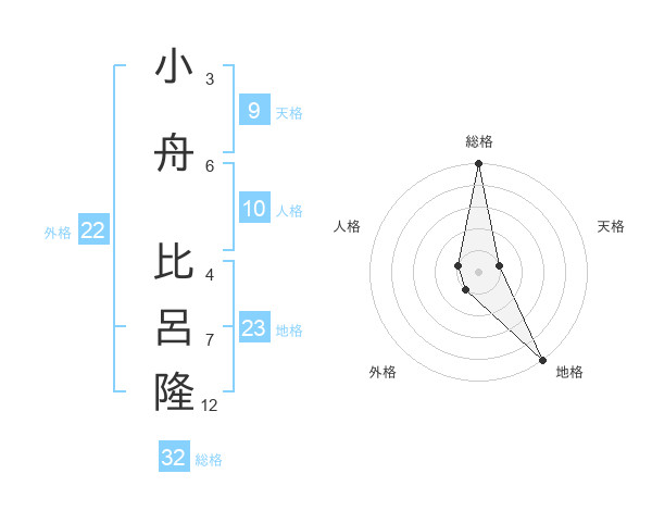 小舟 比呂隆さんの総格は32画の5点!