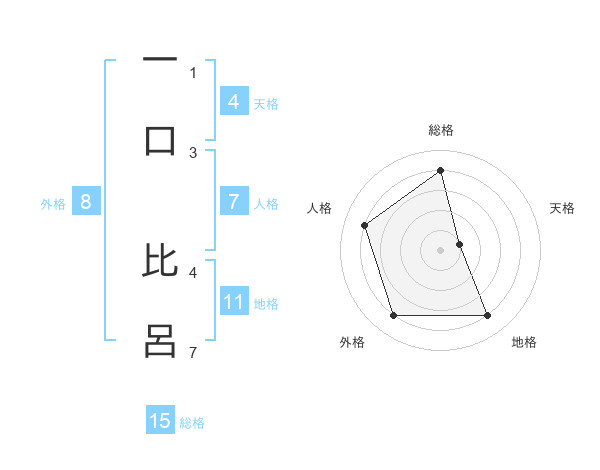 一口 比呂さんの総格は15画の4点!