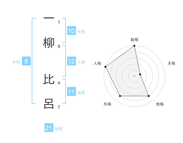 一柳 比呂さんの総格は21画の5点!
