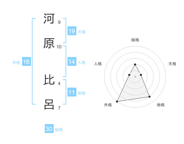 河原 比呂さんの天格は19画の1点!
