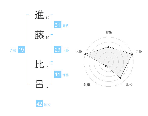 進藤 比呂さんを姓名の画数から五運を鑑定