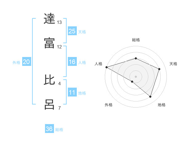 達富 比呂さんの天格は25画の4点!
