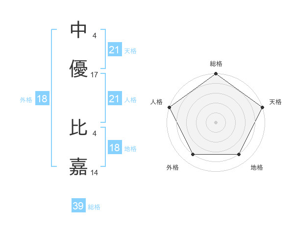 中優 比嘉さんの天格は21画の5点!