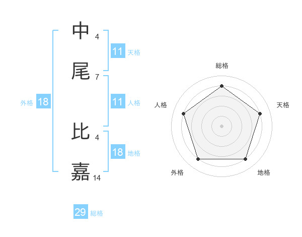 中尾 比嘉さんを姓名の画数から五運を鑑定