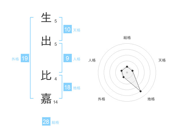 生出 比嘉さんの総格は28画の1点!