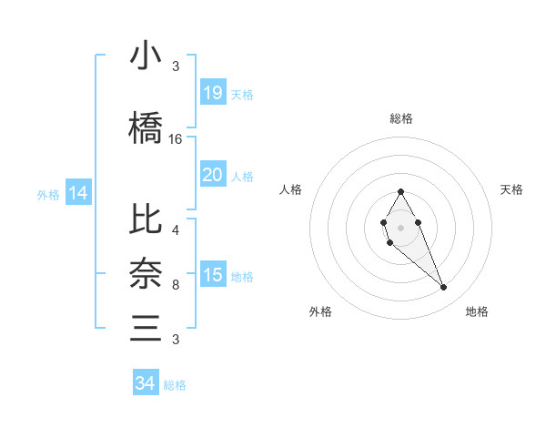 小橋 比奈三さんを姓名の画数から五運を鑑定