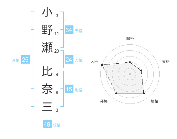 小野瀬 比奈三さんの総格は49画の2点!
