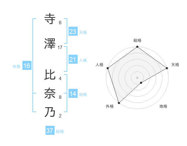寺澤 比奈乃さんの外格は16画の5点!