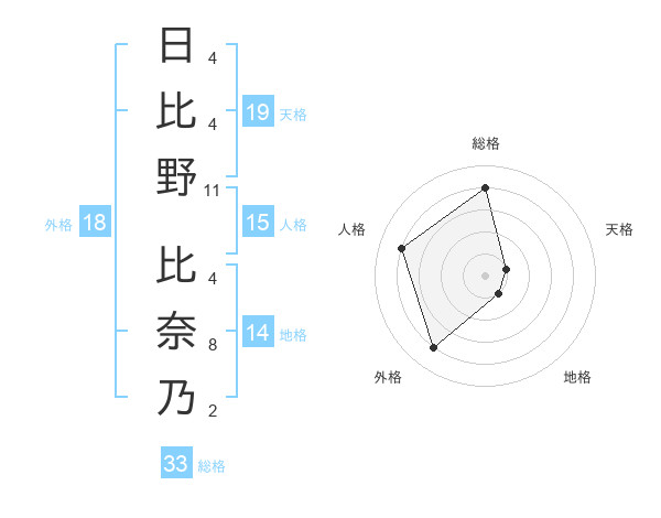 日比野 比奈乃さんを姓名の画数から五運を鑑定