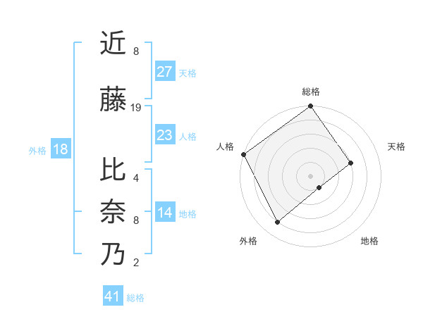 近藤 比奈乃さんを姓名の画数から五運を鑑定