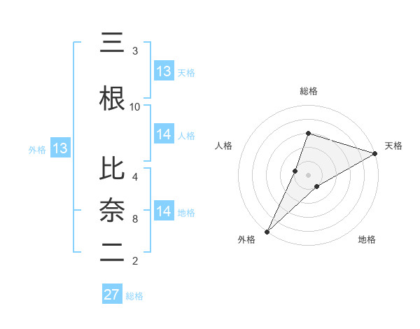 三根 比奈二さんを姓名の画数から五運を鑑定