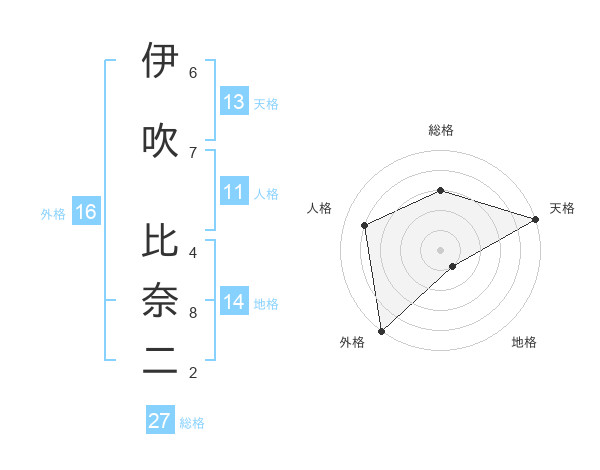 伊吹 比奈二さんを姓名の画数から五運を鑑定