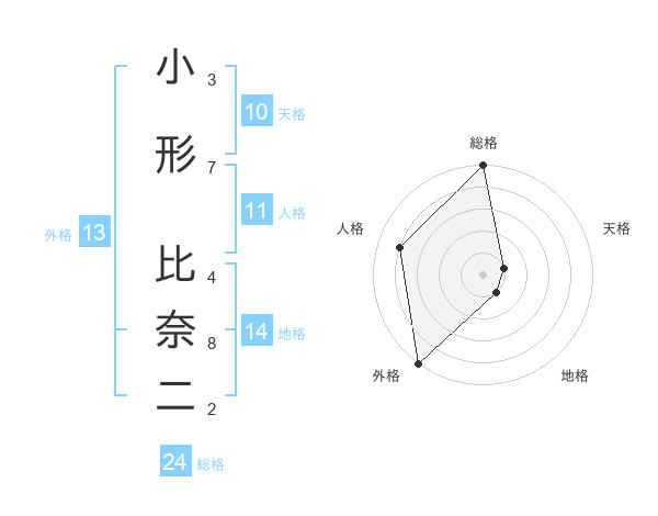 小形 比奈二さんの外格は13画の5点!