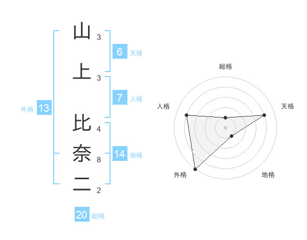 山上 比奈二さんを姓名の画数から五運を鑑定