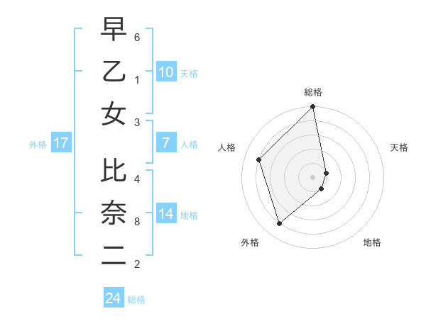 早乙女 比奈二さんを姓名の画数から五運を鑑定