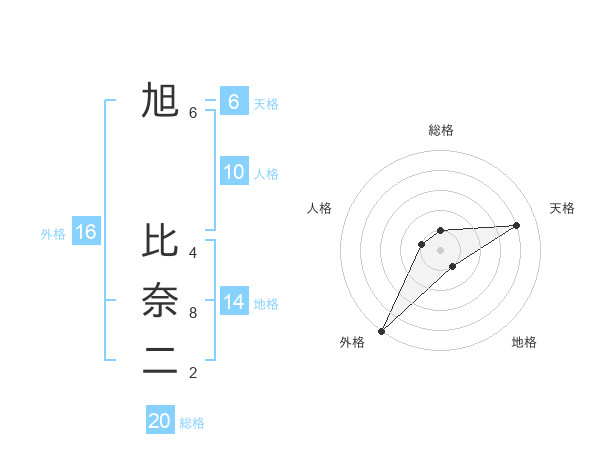 旭 比奈二さんの総格は20画の1点!