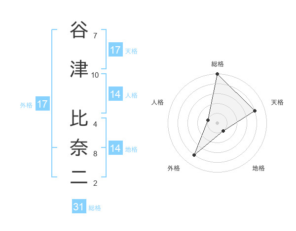 谷津 比奈二さんを姓名の画数から五運を鑑定
