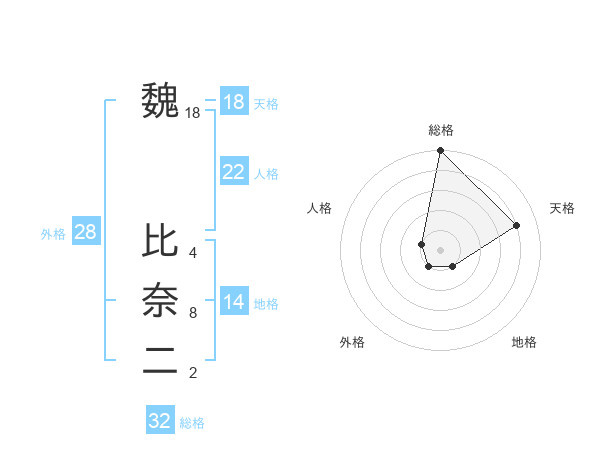 魏 比奈二さんを姓名の画数から五運を鑑定