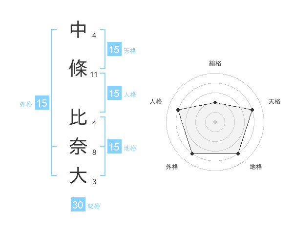 中條 比奈大さんを姓名の画数から五運を鑑定