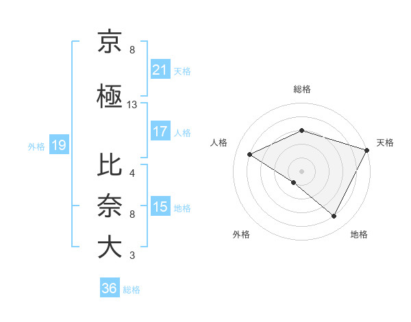 京極 比奈大さんの天格は21画の5点!