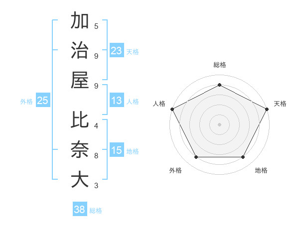 加治屋 比奈大さんの天格は23画の5点!