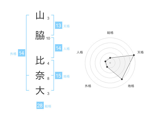山脇 比奈大さんを姓名の画数から五運を鑑定
