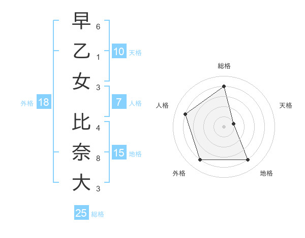 早乙女 比奈大さんを姓名の画数から五運を鑑定