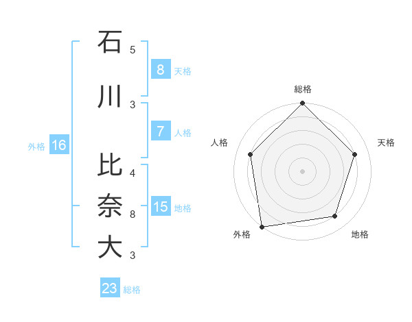 石川 比奈大さんを姓名の画数から五運を鑑定