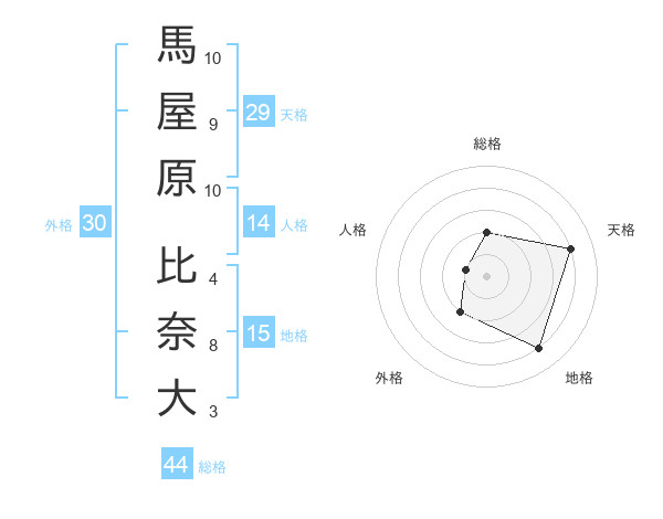 馬屋原 比奈大さんの総格は44画の2点!