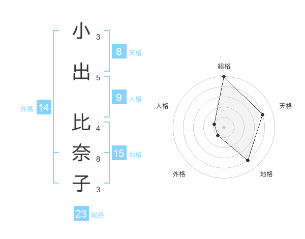 小出 比奈子さんを姓名の画数から五運を鑑定