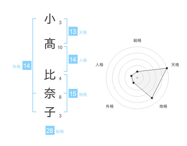 小髙 比奈子さんの天格は13画の5点!
