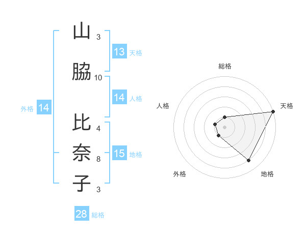 山脇 比奈子さんを姓名の画数から五運を鑑定