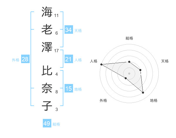 海老澤 比奈子さんを姓名の画数から五運を鑑定