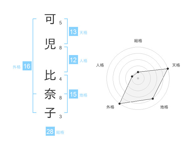 可児 比奈子さんを姓名の画数から五運を鑑定