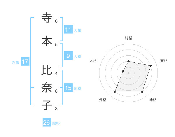 寺本 比奈子さんを姓名の画数から五運を鑑定