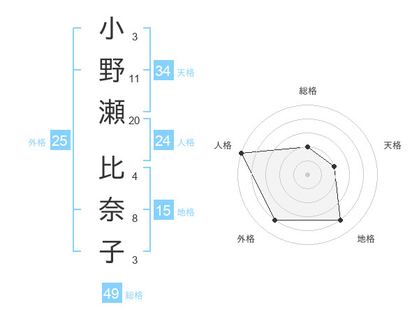 小野瀬 比奈子さんを姓名の画数から五運を鑑定