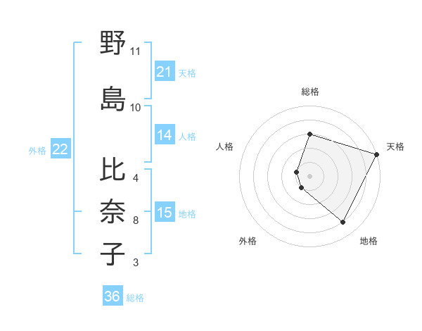 野島 比奈子さんを姓名の画数から五運を鑑定