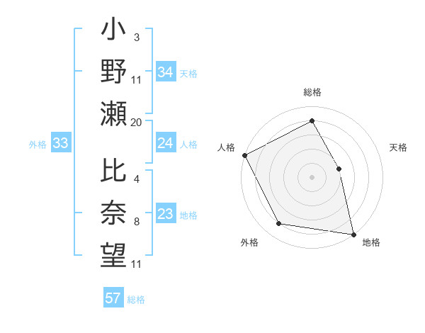 小野瀬 比奈望さんの外格は33画の4点