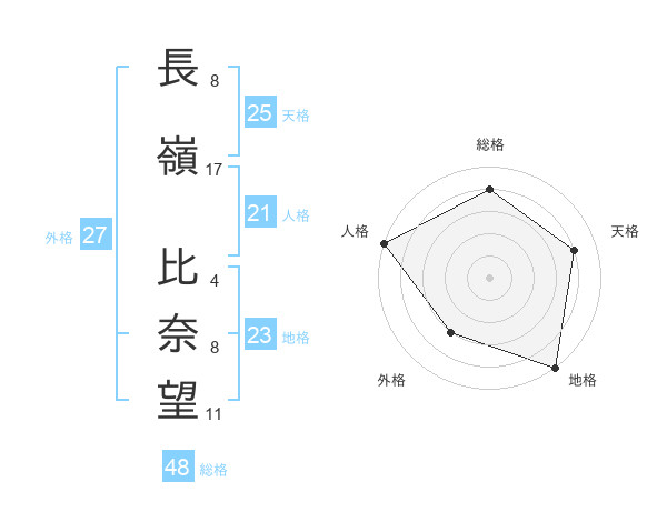 長嶺 比奈望さんを姓名の画数から五運を鑑定