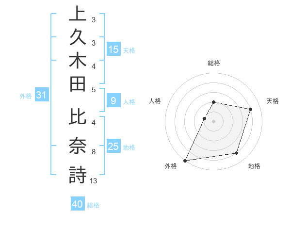 上久木田 比奈詩さんを姓名の画数から五運を鑑定