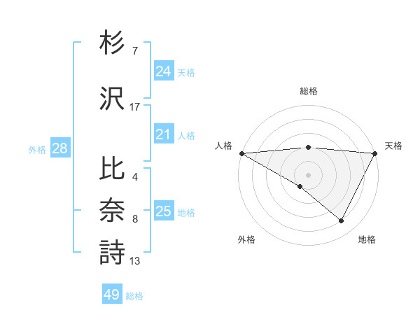 杉沢 比奈詩さんを姓名の画数から五運を鑑定