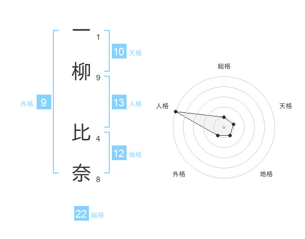 一柳 比奈さんを姓名の画数から五運を鑑定