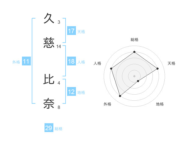 久慈 比奈さんを姓名の画数から五運を鑑定