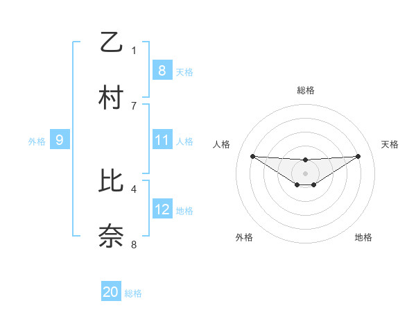 乙村 比奈さんの総格は20画の1点!