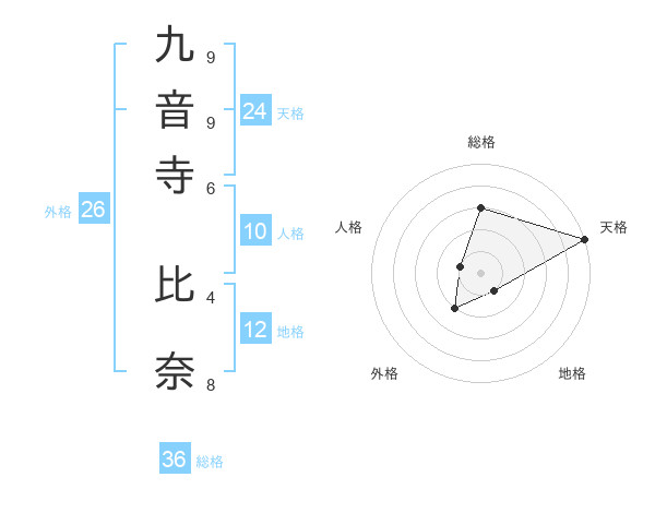 九音寺 比奈さんの天格は24画の5点!