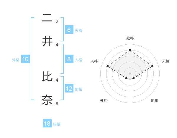 二井 比奈さんの総格は18画の4点!
