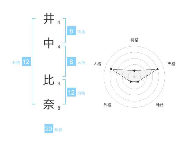 井中 比奈さんの総格は20画の1点!