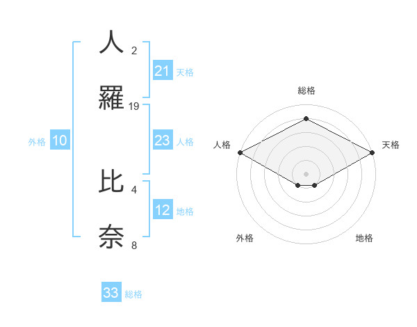 人羅 比奈さんを姓名の画数から五運を鑑定