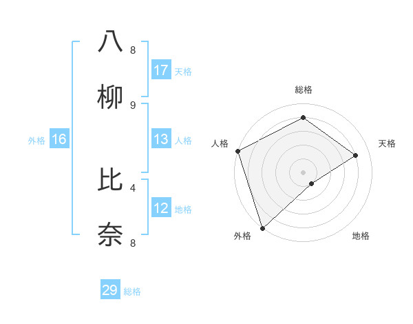 八柳 比奈さんの天格は17画の4点!