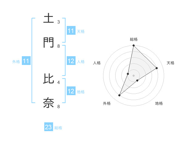 土門 比奈さんの天格は11画の4点!